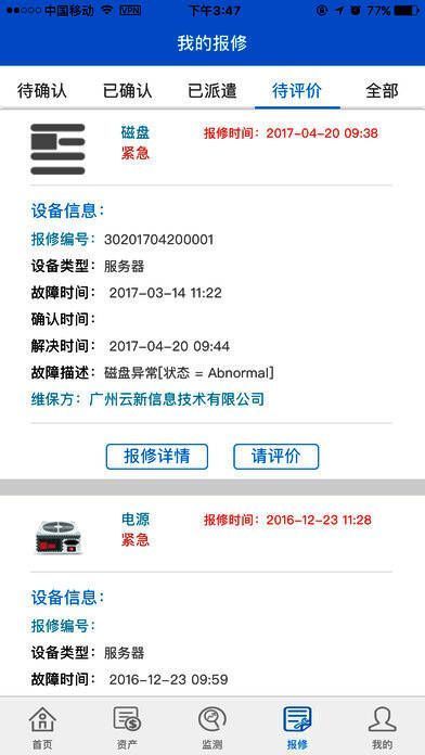 1、通过web及App应用实现设备部件的集中监控和告警,在线维保、备件资源库,工程师租赁服务,为企业提供跨厂商、跨硬件平台的全方位监测、资产管理以及设备维修跟踪服务;