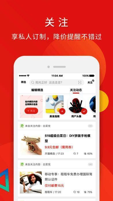 2、【关注】全新改版,想买什么关注什么,更支持50+电商商品降价提醒!618来了,快来订制你的关注吧;