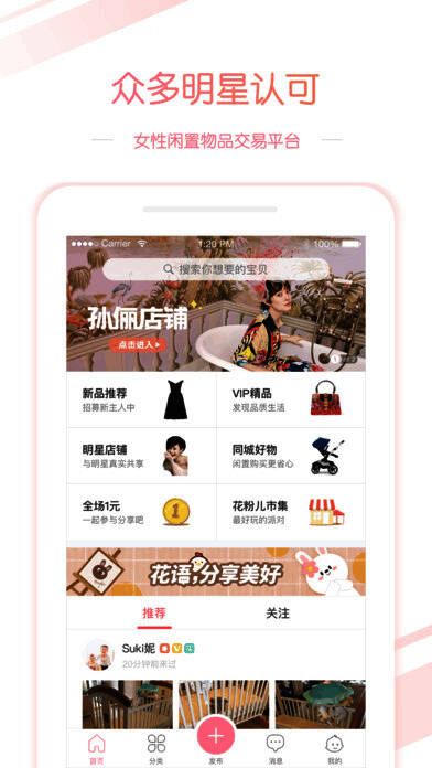 1、众多明星、时尚红人信赖的闲置转让、交易平台,她们都在花粉儿开店啦;