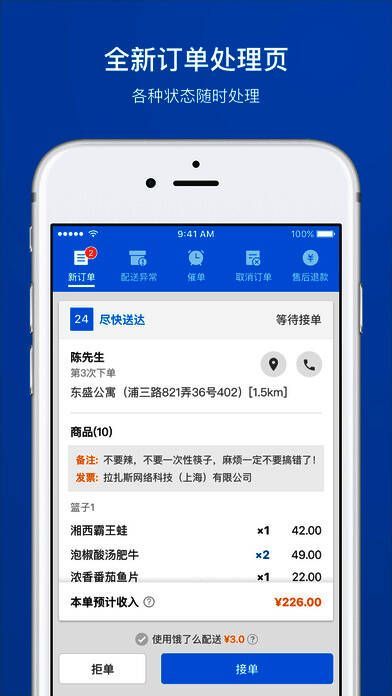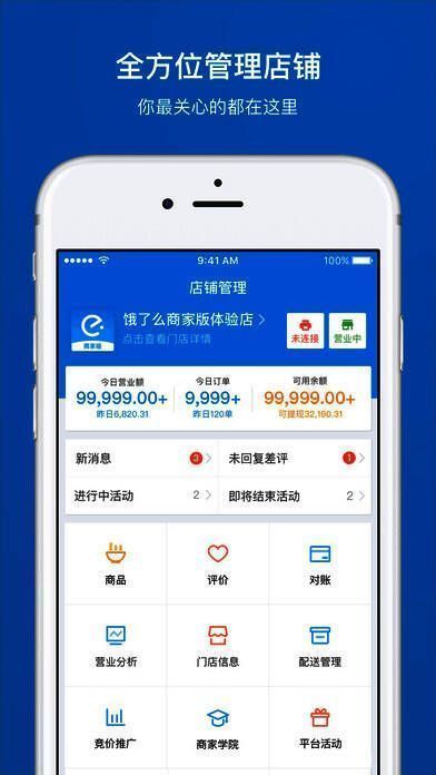 《饿了么 商家版》是由饿了么官方推出的餐厅管理系统,方便商家能够轻松处理订单信息,更便捷地管理餐厅,在这里,商家能够随时随地了解订单详情,轻松管理餐厅,快来将你的餐厅搬到饿了么平台吧!