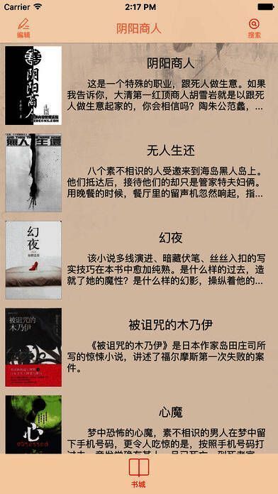 《阴阳商人》是款阅读类软件;主题定义为恐怖小说,免费提供9本书籍可供喜欢惊悚恐怖的小说迷阅读;该软件还有一个特色就是能离线观看小说,无论你是从何处下载而来的小说,在此软件上也可以阅读,当做阅读器使用。