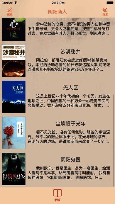 应用共推荐了9本书,其中第一本书《阴阳商人》讲述这是一个特殊的职业,跟死人做生意;如果我告诉你,大清第一红顶商人胡雪岩就是以跟死人做生意起家的,你会相信吗?陶朱公范蠡,明初巨富沈万三,你以为,他们这些人真的就只是简单的白手起家吗?你真的以为,明朝巨富沈万三只是因为修建了长城才受到朱元璋的迫害吗?这个行业存在了千年,却因为它的神秘性一直不为人知,现在也该是讲讲我们这群人故事的时候了。本应用可离线观看小说,点击书城按钮可以获取并观看更多小说。