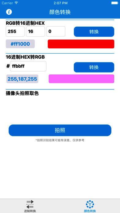 2、颜色转换,支持RGB颜色与HEX数值之间的转换;