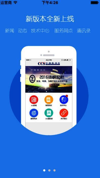 2、CCS新闻、规范动态及通函通告、通讯录、服务网点等查询功能;