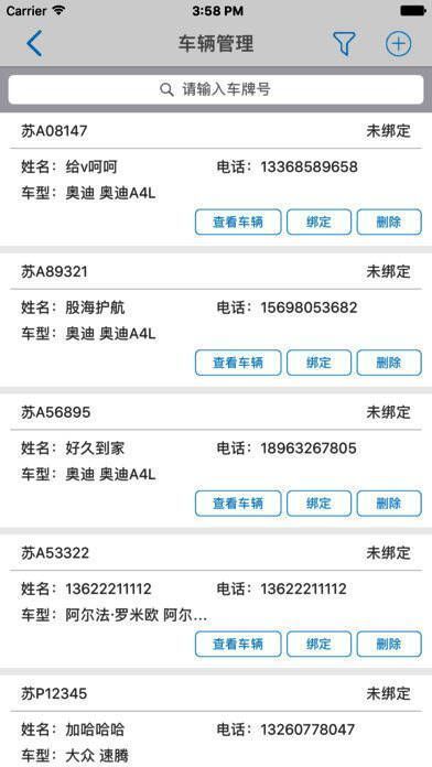 2、可以让管理员很方便的在手机上进行用户、车辆及设备等管理,如:新增用户、新增车辆及绑定设备等操作都可以很轻松的通过手机实现。