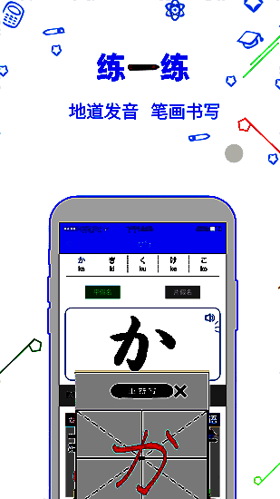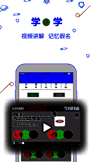 【五十音】老师真人录制,讲解全面,小白零基础用户的好助手。 假名学习:每个假名都配有一个讲解视频,真人发音,专业老师亲自讲解。联想记忆:每个假名都配有关联词语,每个词语都有配图,真人朗读发音,让你学习不枯燥。 教学视频:丰富的免费教学视频,每天更新,每天学一点,每天进步一点点。