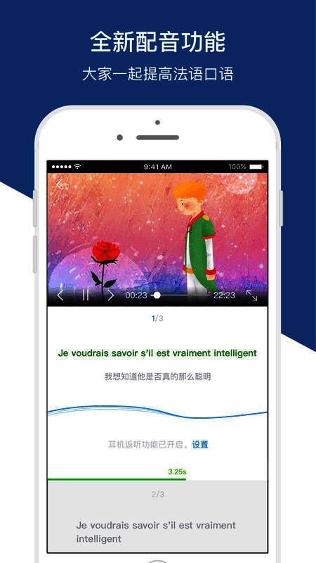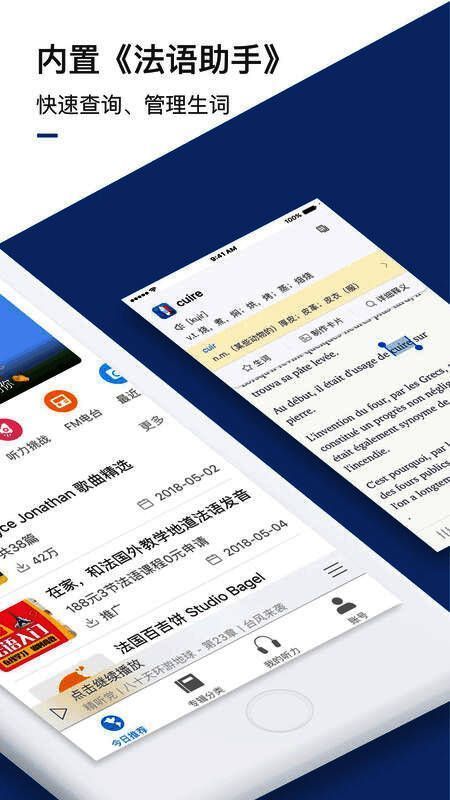 4、全新FM电台功能,实时流畅收听最新法语节目,锻炼法语听力必备。