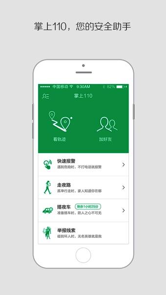 1、一键报警:在危险情况不适合电话报警时,使用掌上110进行一键短信报警,隐秘实现自我保护。