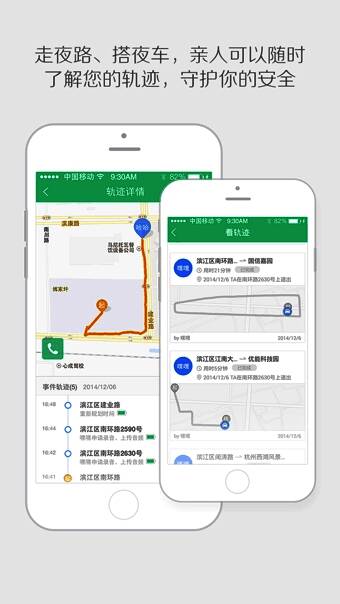 2、安全出行:当亲人夜间出行或者搭夜车时,查看实时轨迹、远程录音,及时给予对方一份关心。