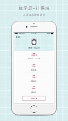《优学思助手》是一个专业的1对1在线教学平台。老师可以通过这个app来安排课程,点击相应课程即可了解详细的课程信息。对于老师来说,优学思助手是一个方便的学习助手。
