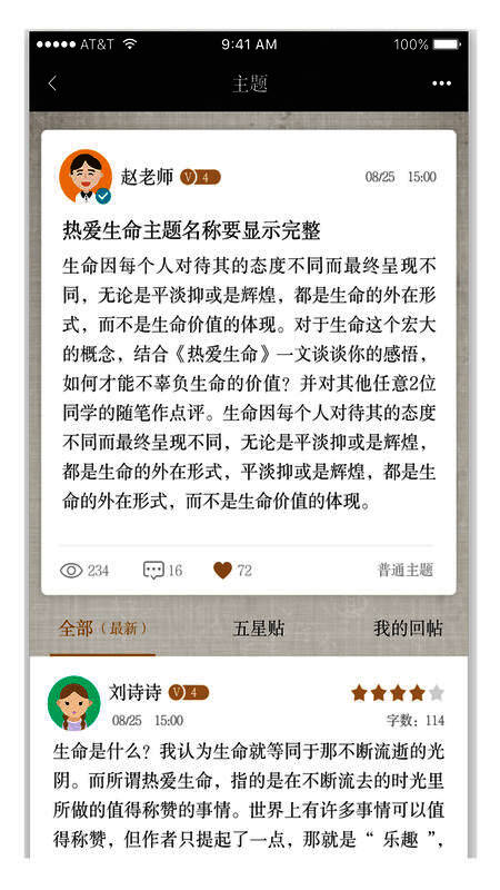 4、教学活动参与:学生收到活动后,即可通过回帖和评论方式参与活动,分享个人观点;