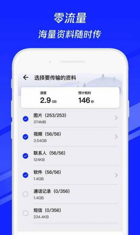 选择相应的文件类型,然后选择新手机,瞬间完成传输。