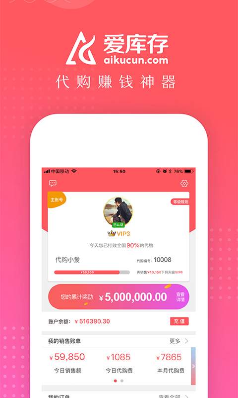 《爱库存》是一款共享购物平台,是微商代购的赚钱神器。爱库存为商品代购者提供了低价的库存商品,以超低的批发价格转卖,从而让用户可以享用其中的差价收益。
