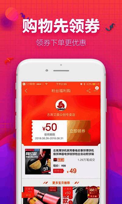121购物是谷武科技(北京)有限公司旗下的一款手机优惠购物APP,提供海量大额优惠券,用于网购优惠分享,省钱购物的平台。