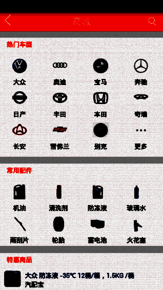 商品分类明确,装饰、轮胎、机油、车载、空调系统等分类一目了然;