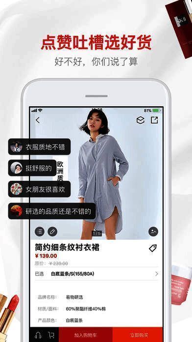 易物研选,基于移动互联网和自身供应链的生活电商APP,帮助用户研选世间好物,打造有品质的生活。平台涵盖服饰、居家、美妆、餐厨、鞋包等产品品类,精选同类性价比超优产品,提供最优质的客户服务,让用户指尖滑动间,拥有最完美的购物体验。