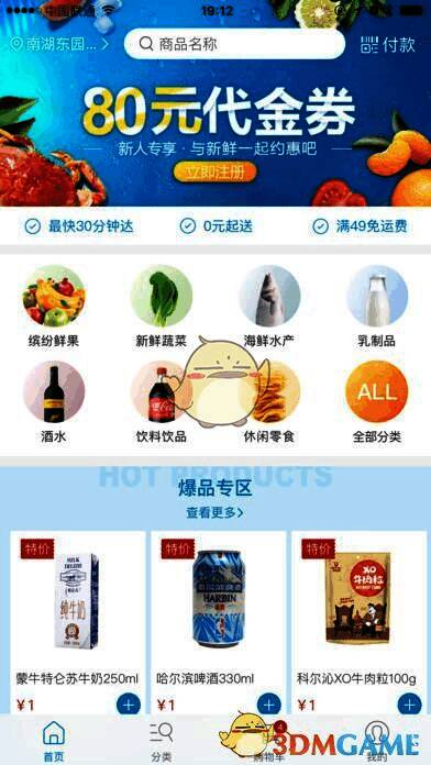 3、掌鱼生鲜app品类涵盖蔬菜、水果、海鲜、肉禽蛋、乳品饮品、零食、粮油等,实现1小时内配送到家。