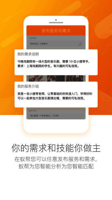 蚁帮是人与人之间闲置时间与技能的交易平台,我们要帮助更多的服务者发现自己的真实价值.