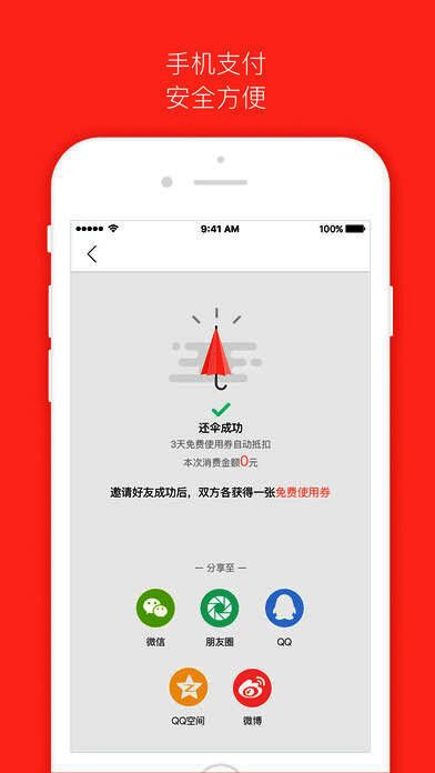 3、轻松注册,免费用伞;