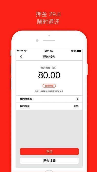 4、充值押金,一秒到账。