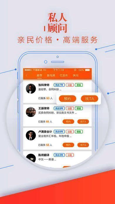 这里有你人生中的必交之友,律师、翻译、财务、医生、教师等,遇到问题,轻松咨询或简单发布,就能获得到一对一的贴心服务。