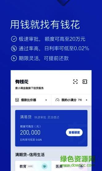 百度有钱花官方app为百度用户提供最高额度20万元的信用循环现金贷款。这是纯信用,不需要抵押,具有申请方便、审批快捷、回收利用等优点,可以满足用户日常消费周转的资金需求,审批速度甚至可以达到“二次审批”的水平,在借阅过程中,个人信息全程加密,全程只保护用户的信息安全,有需要的用户快来下载体验吧!