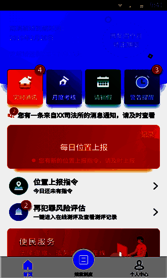 浙里矫是一款专门用于社区矫正对象的平台,用户可以登录软件平台一键发布最新的位置信息,方便后台的监管人员查看了解自己的动态,一键轻松掌握工作人员的具体情况,每天了解最新的矫正动态,提高工作效率,加快服务流程的审批的时间,供监管工作人员了解社区矫正对象的位置动态,提升监管力度需要提交自己的身份证号在这个平台上注册,注册成功之后就可以申请了。