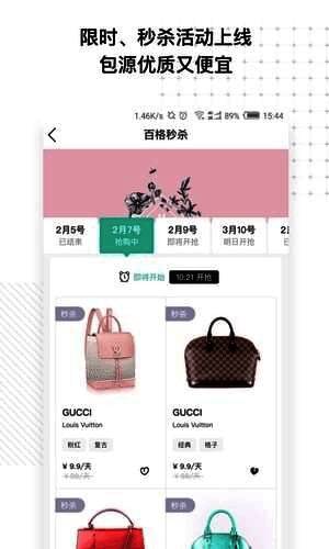 1、百格app,全球大牌包包共享App;