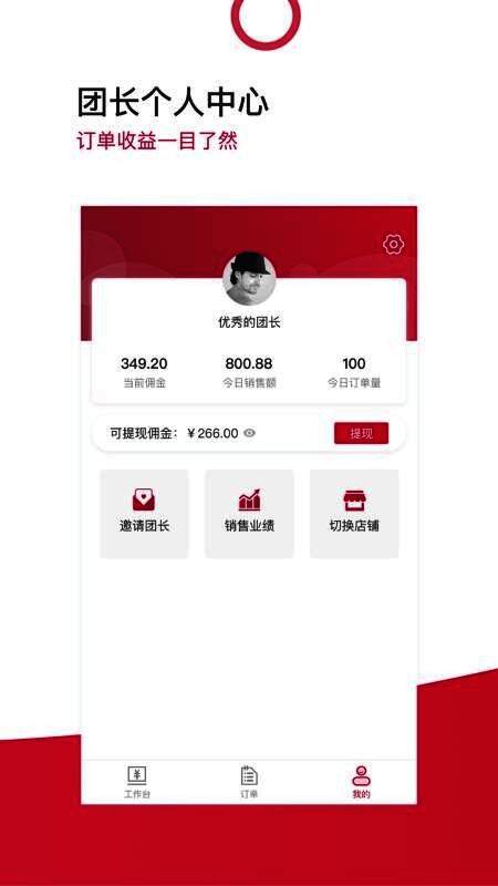 团长个人中心,订单收益一键目了然;
