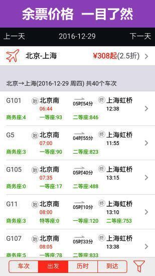 9、实时数据:实时同步12306余票、价格、时刻表。