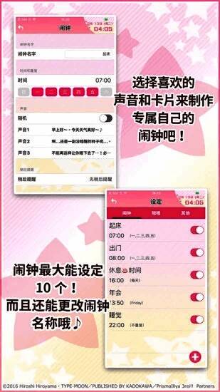 每获得5枚印章就能开放一张可设定为闹钟和壁纸的卡片(由SILVER LINK.描画)!※该功能需要另行购买之后才可被开放。