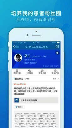 该应用针对医生用户,医生可以为自己熟悉的患者建一个可以随时管理、记录、跟踪、交流、检索和查看情况的患者群,与QQ群和微信群相比更具有专业性、私密性和识别性,您与您的患者可以通过这个应用进行交流,可以选择性成为某些熟悉患者的私人医生,患者少而优,患者由您选,免费收费由您定。