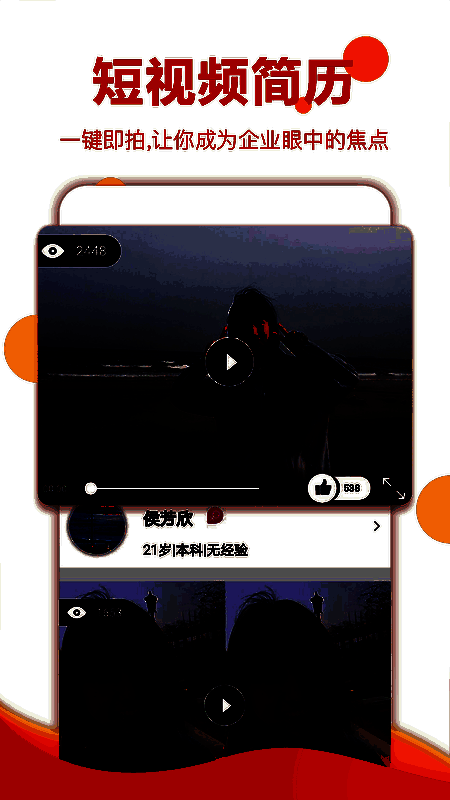 坐在家里就可以面试的APP,免去了赶场式面试时间的浪费,严格审核商家,虚假信息统统过滤个人可录制视频简历;