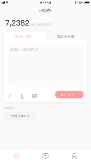 小回音App是一款无压力语音社交软件。写一张纸条,百分百真人回应,安全私密无压力。可能是最熟悉的陌生人,也许是最好的倾诉对象,现在每天有上万封用户小纸条在小回音上被寄出。