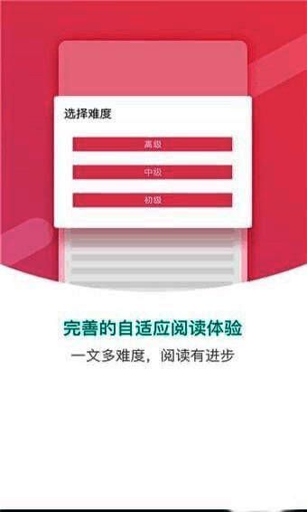 4、完善的自适应阅读体验:一文多难度,阅读有进度。