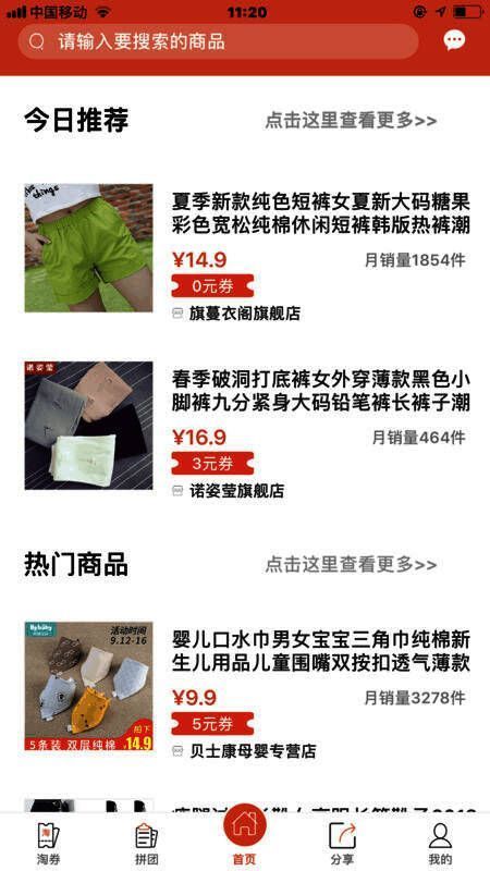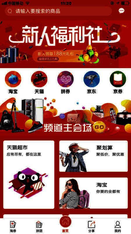 4、聚划算:同步淘宝天猫聚划算活动产品,并提供大额优惠券,以及下单返利。