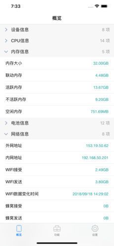最关键的是:当前主频、内存详细、电池详细、网络信息都是实时更新的哦