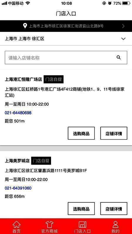 2、寻找附近门店,查看驾车、步行、公交路线;
