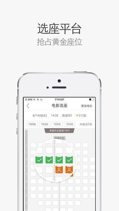 5、近1200家影院支持选座,在线选座不排队,好座位就在你手中;