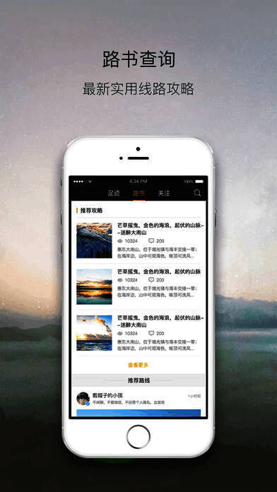 2、行程规划:路书查询,最新实用线路攻略,协助您轻松规划户外之旅;