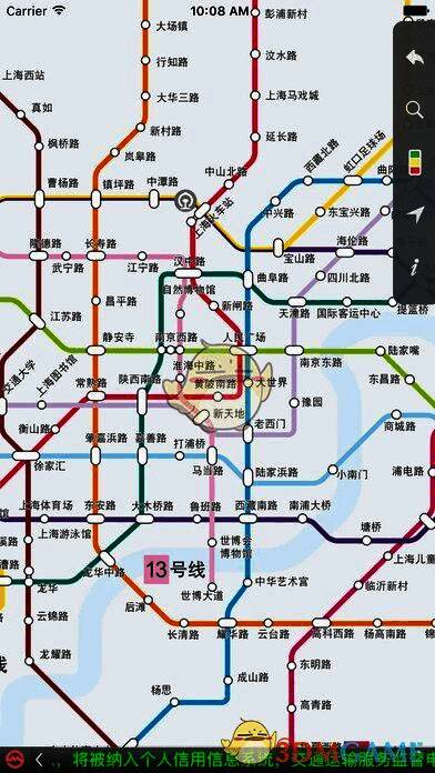 上海地铁APP升级至最新版后,从主界面可以看到放大了的网络图,更方便查询各条线路及车站信息。而轻点右侧第三个TOS图层按钮,网络图立即变色,全网络中哪些车站或区段正在限流,哪些车站拥挤客流较大,会立即显示出来。通过绿色、黄色、红色不同级别标注车站,方便乘客知道哪些车站正在拥堵或大客流,是否还需要前往乘车或改其他交通工具。
