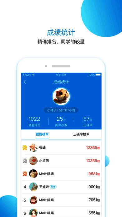 4、成绩排名:精确的个人数据统计,与小伙伴之间的默默较量,让学习更有趣。