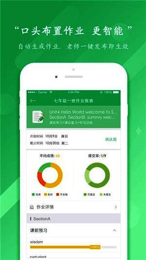 教师可以在线查看班级的作业报告,了解学生的成绩;