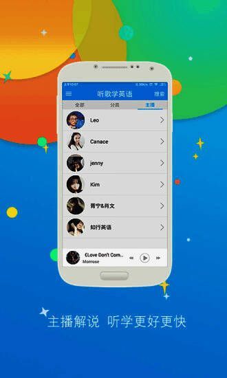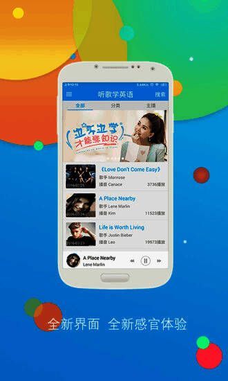 听歌学英语软件是北京爱语吧科技一款听歌学英语软件。听歌学英语软件在听读原汁原味的英文歌曲的同时,飞速地提高英语的听读能力,快乐地学习英语词汇,语法和用法。优美的音乐,炫酷的界面,让你轻松学英语。