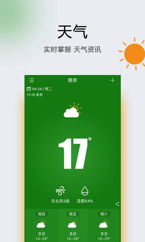 4、24小时天气准确预报。