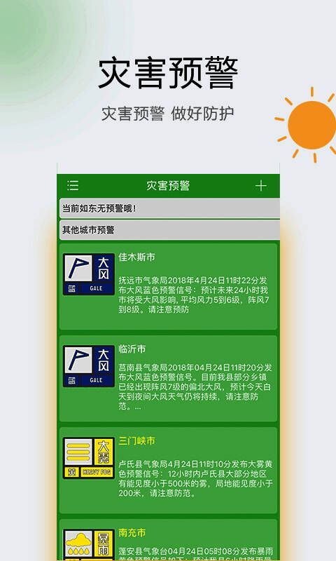 《如东天气》是一款非常全面的生活天气预测服务软件,这款软件不仅能为你提供专业的图标显示,更可以让你通过这款软件获知最新的自然灾害信息哟!赶快下载软件开始使用吧!