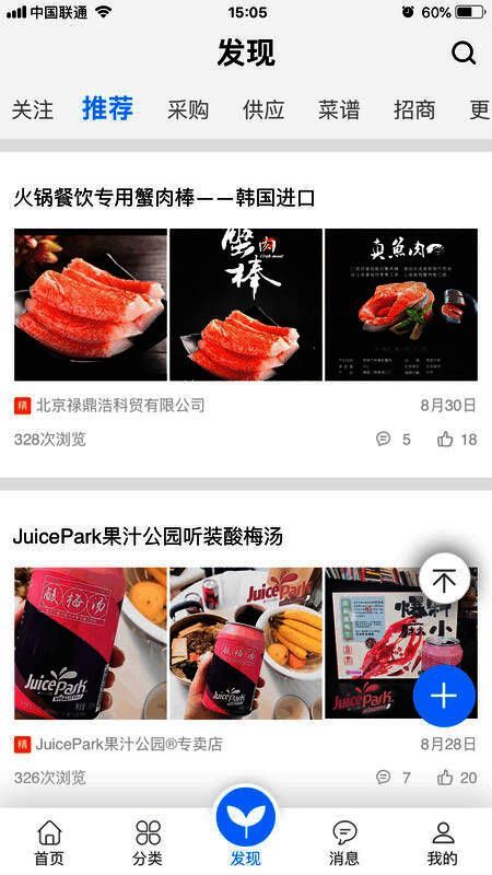 7、菜品食材供应链的内容社区,鲸品菜谱、采购招标、新品预售、招代理、市场行情、品牌商家汇、线上展会等内容频道,随心所欲,想看就看,想发就发,想评就评。