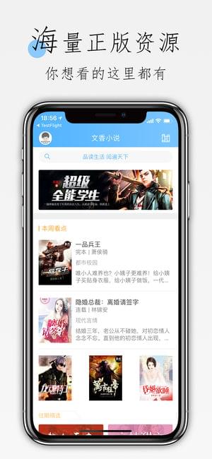 《文香小说》是一款你不容错过的正版小说阅读平台,阅读资源非常全面,不仅能为你提供最全面的榜单分类,帮你轻松挑好书,还可以让你在这款软件中享受到简洁清爽的软件界面带给你的视觉享受!