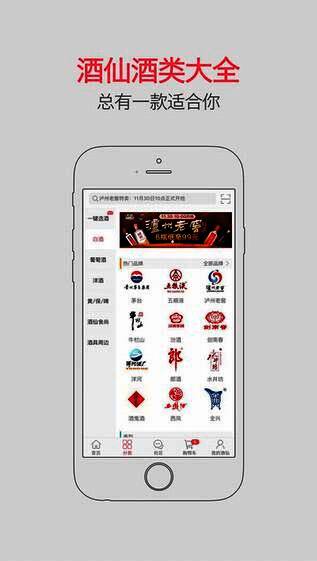 4、一键选酒:热卖好酒、名优白酒、红酒直采、喜宴用酒;