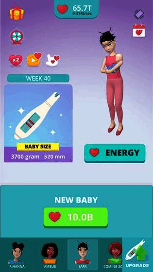 恭喜恭喜,喜得贵子!《怀孕空闲模拟器3D》是一款高度还原真实怀孕到出生的模拟游戏!怀孕空闲模拟器3D游戏高清细腻的画面,3D的游戏场景,给你最最佳的游戏体验感!游戏的玩法很简单!轻松的放置类的模拟经营的玩法,操作起来很简单!可以让你真实的感受到怀孕周期!在游戏中尽情的体验一番做准妈妈的感受吧!